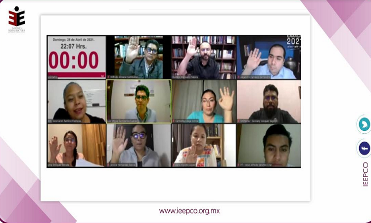 Finalmente, se aprobó la resolución IEEPCO-RCG-06/2021, relativo al Recurso de Revisión en el expediente IEEPCO-CG-RR-02/2021, promovido por el representante propietario del Partido Encuentro Solidario ante el Consejo Municipal Electoral de Santa María Jacatepec. Se confirma la sede del Consejo Municipal Electoral de Santa María Jacatepec.