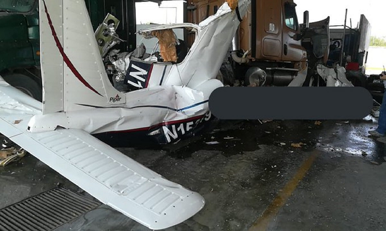 Los primeros informes indican que el aeronave cayó en el patio de una empresa de transportes, mientras que en fotografías se puede apreciar que se impactó contra un camión pesado.