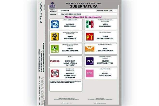 El Instituto Electoral de Participación Ciudadana (IEPC) presentó este domingo la boleta electoral para la Gubernatura de Guerrero y en esta aparece a la abanderada morenista Evelyn Salgado Pineda con su apodo de “La Torita”.