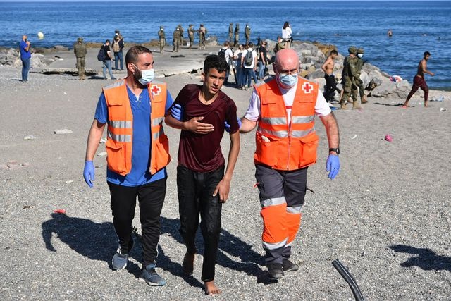 Ceuta, con una población de 70 mil personas, tuvo que decretar una especie de estado de sitio ante la crisis humanitaria desatada, con centenares de voluntarios de la Cruz Roja atendiendo a los migrantes, muchos de ellos con signos deshidratación o con lesiones por la larga travesía para llegar hasta territorio español.