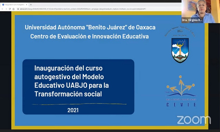 ElCentro de Evaluación e Innovación Educativa (CEVIE) de la Máxima Casa de Estudios de Oaxaca, dio inicio al Curso Autogestivo del “Modelo Educativo UABJO para la Transformación Social”.