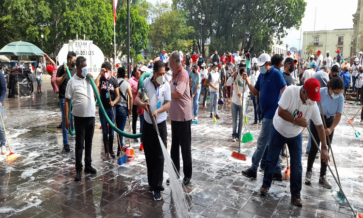 Ante cientos de personas se concentraron en el zócalo capitalino y la Alameda de León, para realizar actividades de limpieza y sanitización.