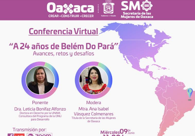 A fin de visibilizar los avances a la protección, la observancia, la promoción, el estudio y la divulgación de los derechos humanos que ampara el orden jurídico mexicano para las mujeres, la Secretaría de las Mujeres de Oaxaca (SMO) invita a presenciar la conferencia virtual titulada “A 24 años de Belém do Pará: Avances, Retos y Desafíos”, este miércoles 9 de junio a las 11:00 horas.