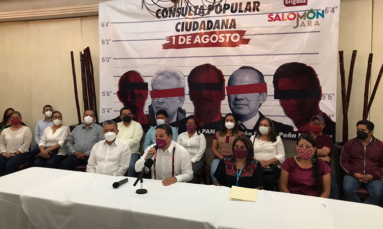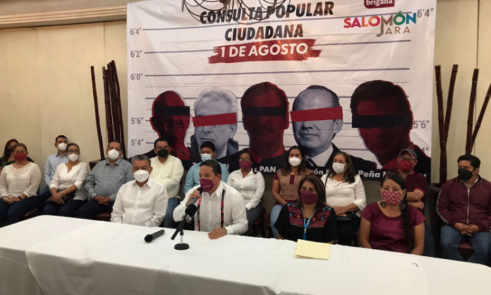 Oaxaca de Juárez. Promotores municipales de la Consulta Popular en la capital oaxaqueña, exhortaron a la ciudadanía a salir a votar el próximo 1 de agosto sobre si deben o no abrirse procesos penales contra autoridades del país, así como a votar por el “Sí”.