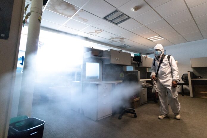 Las labores incluyen el saneamiento de diversas superficies, como escritorios, sillas, paredes y demás elementos que están en contacto con el capital humano y que son esenciales para atender a la ciudadanía. Además, se han colocado plásticos para evitar el contacto directo.