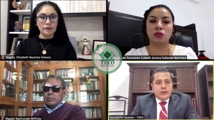 En esta sesión de resolución, realizada mediante videoconferencia, las Magistradas y el Magistrado del TEEO declararon la existencia de violencia política en razón de género, cometida en contra de regidoras de San Jerónimo Sosola y Magdalena Apasco, por parte de los respectivos presidentes municipales.