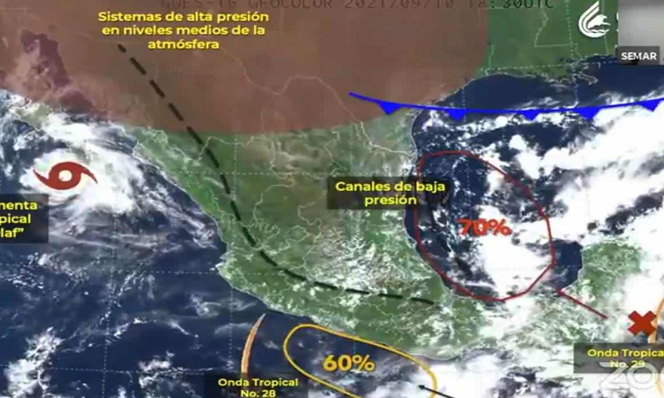 La Coordinación Estatal de Protección Civil de Oaxaca (CEPCO) informa sobre el registro de una zona de baja presión, misma que incrementó a 60% su probabilidad para desarrollo ciclónico en 48 horas.