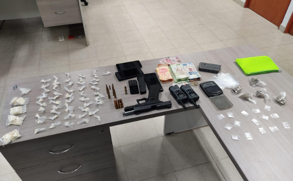 El primer cateo se realizó en un domicilio particular ubicado en inmediaciones de la colonia Guadalupe, en la Quinta Sección, donde elementos de la AEI aseguraron diversas dosis de las drogas denominadas cocaína y cristal, así como un arma de fuego, cargadores y cartuchos útiles de diversos calibres, una báscula gramera, dos radios de comunicación, teléfonos celulares y más de 23 mil pesos de dinero en efectivo, además de la detención de los masculinos V. G. J. y L. S. L.
