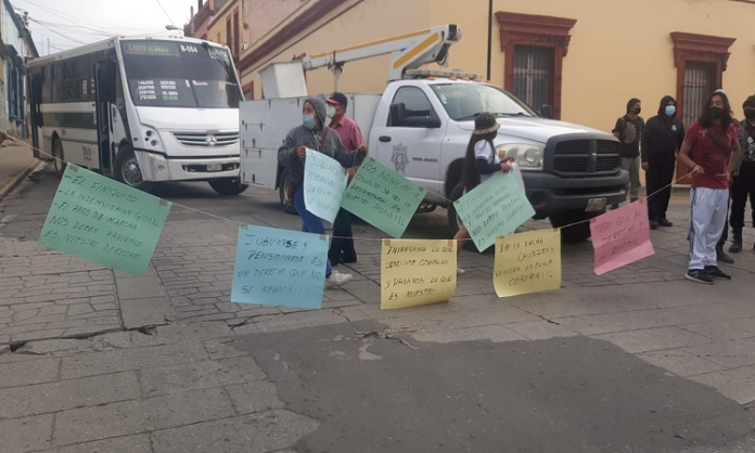 Los inconformes acordonaron la calle Morelos esquina Tinoco y palacios así como la calle de Independencia esquina Tinoco y palacios, Díaz Ordaz, ocasionado caos vial en el centro de la ciudad capital.