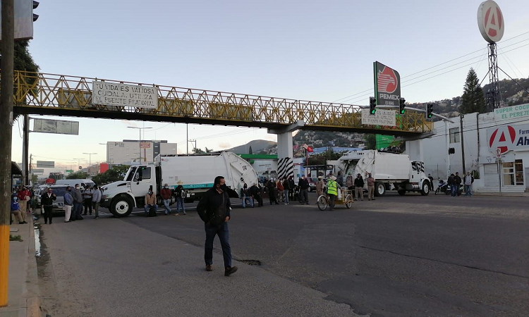 Los inconformes, también instalaron un plantón en el Palacio Municipal de Oaxaca para solicitar al munícipe el pago de combustible y herramientas de trabajo.