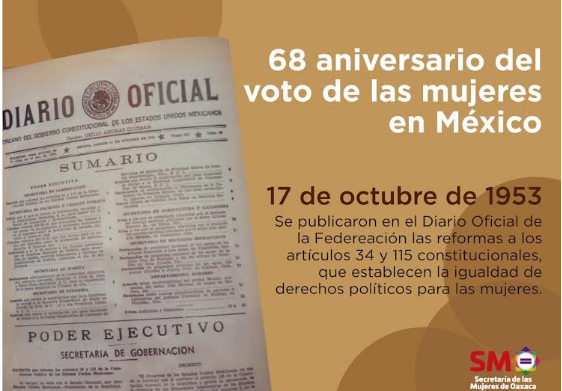 La funcionaria estatal se pronunció por no olvidar que el sufragio femenino es el resultado del reclamo social y lucha constante de las mujeres. Lo anterior, en el marco del aniversario del voto femenino en nuestro país, luego de las reformas constitucionales a los artículos 34 y 115 publicadas en el Diario Oficial de la Federación el 17 de octubre de 1953, durante el gobierno del presidente Adolfo Ruiz Cortines.