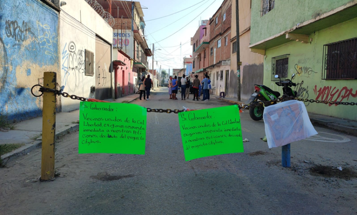 Oaxaca de Juárez. Vecinos de la colonia Libertad de la Ciudad de Oaxaca de Juárez, bloquearon este jueves la calle de Las Flores, para denunciar afectaciones en sus vialidades debido a las obras de construcción de la terminal del Cytibus.