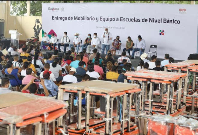 En cumplimiento a la palabra del gobernador Alejandro Murat Hinojosa de fortalecer la educación de calidad, inclusiva y con equidad, el director general del Instituto Estatal de Educación Pública de Oaxaca (IEEPO), Francisco Ángel Villarreal, realizó la entrega de mobiliario y equipo escolar a 88 escuelas de la región Chinantla en la Cuenca del Papaloapan y una de San Pablo Villa de Mitla, en beneficio de siete mil 505 estudiantes y 447 docentes.