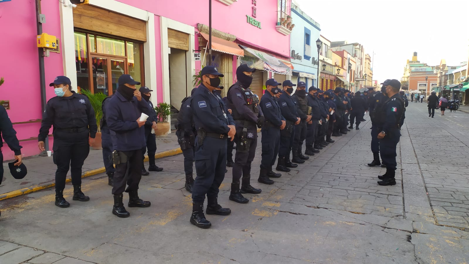 Oaxaca de Juárez. Elementos de la policía municipal de Oaxaca de Juárez, cercaron este sábado los accesos a la calle Bustamante y 20 de Noviembre.