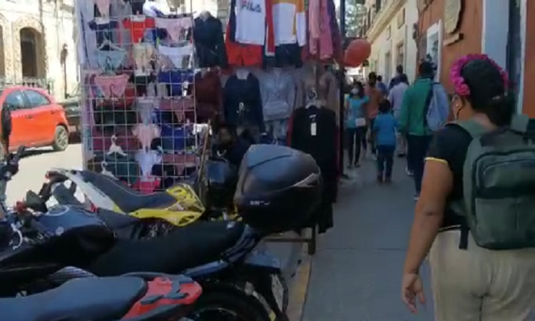 Oaxaca de Juárez. Comerciantes ambulantes de la ciudad de Oaxaca, hicieron caso omiso al llamado de las autoridades municipales e instalaron sus puestos en calles del centro histórico.