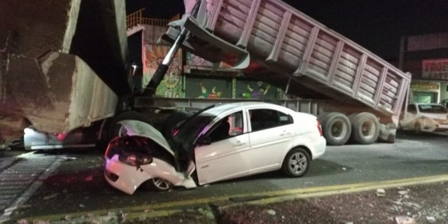 El camión que derribó el puente peatonal, al parecer se le “accionó la grúa de tu tolva” por lo que al pasar por esta vía estatal generó la caída de la estructura, señalan autoridades de forma preliminar.