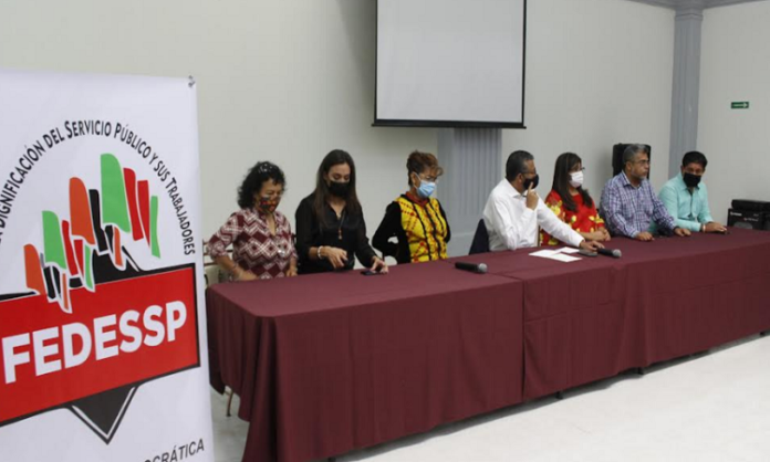 Secretarios Generales y dirigentes afiliados a la Federación Democrática de Sindicatos de Servidores Públicos (Fedessp) en Oaxaca, validaron este viernes 6 de noviembre, la toma de protesta de la Profesora Victoria Cruz Villar como presidenta colegiada de esta federación.