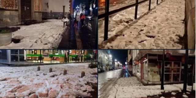 Las fotografías mostraron que el granizo alcanzó una altura de hasta 10 centímetros en algunos lugares de la ciudad.