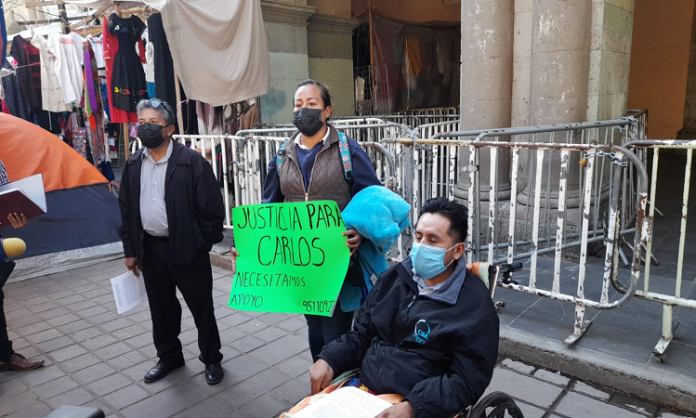 Oaxaca de Juárez. Carlos Noé Alonso Contreras quien fue víctima de un accidente vial, se manifestó este jueves frente a palacio de Gobierno para exigir justicia.