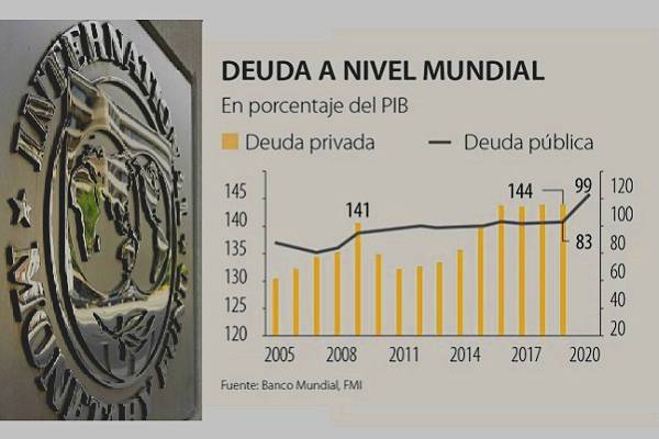 La deuda mundial alcanzó el año pasado el nivel récord de 226 billones de dólares, equivalente a 256% del PIB del planeta, por efecto de la pandemia, anunció el miércoles el Fondo Monetario Internacional (FMI).