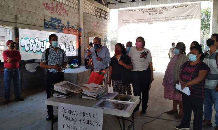 Oaxaca de Juárez. Ex trabajadores de la empresa “Novopan” se manifestaron este jueves en el predio que albergaba la fábrica de Triplay en la ciudad de Oaxaca.