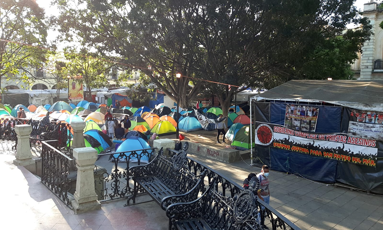 Oaxaca de Juárez. Decenas de egresados de las 11 escuelas normales de la generación 2017-2021 cumplieron este martes dos días de plantón en el zócalo de la ciudad de Oaxaca.
