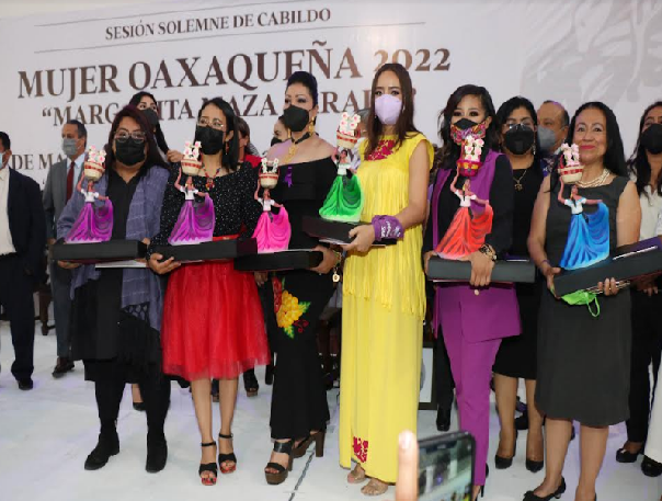 En Sesión Solemne de Cabildo realizado en el patio del Palacio Municipal, la Licenciada en Diseño de la Moda Internacional por la Escuela Libre de Arte y Diseño recibió el galardón Mujer Oaxaqueña 2022 “Margarita Maza Parada” de manos del edil Francisco Martínez Neri.