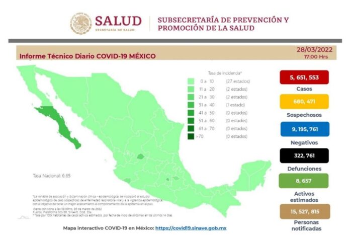 Se reveló que hay 657 nuevos casos, para dar un total de 5 millones 651 mil 553 de contagios.