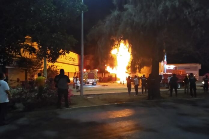 Oaxaca de Juárez. Solo cuantiosos daños materiales fue el saldo de un fuerte incendio en un almacén de llantas ubicado sobre avenida símbolos patrios en la ciudad de Oaxaca de Juárez.