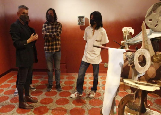 El ambiente creado por el artista oaxaqueño permitió a las y los espectadores admirar las pinturas instaladas al centro de la galería “Rufino Tamayo” y también los conminó a detenerse a mirar aquellos que fueron colocados sobre la pared.
