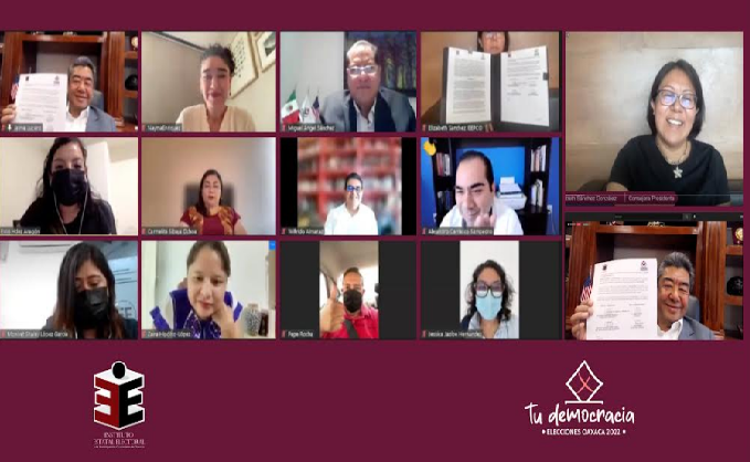 El evento, que se llevó a cabo de manera virtual, estuvo encabezado por la consejera presidenta del IEEPCO, Elizabeth Sánchez González; la consejera electoral y presidenta de la Comisión Temporal de Voto en el Extranjero, Nayma Enríquez Estrada; y el fundador y presidente de Fuerza Migrante, Jaime Lucero.