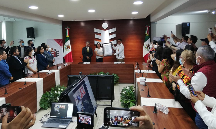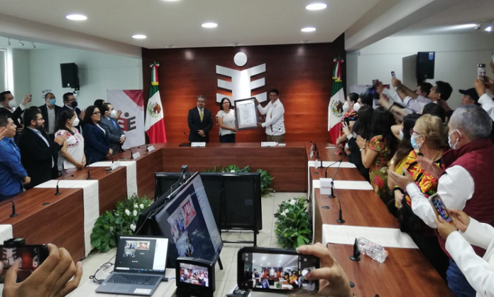 Tras la revisión de las actas de cómputo distritales y del voto de las oaxaqueñas y oaxaqueños en el extranjero, este lunes se entregó la constancia de mayoría por parte de Elizabeth Sánchez Gonzales, consejera presidenta del Instituto Estatal Electoral y de Participación Ciudadana de Oaxaca (IEEPCO).