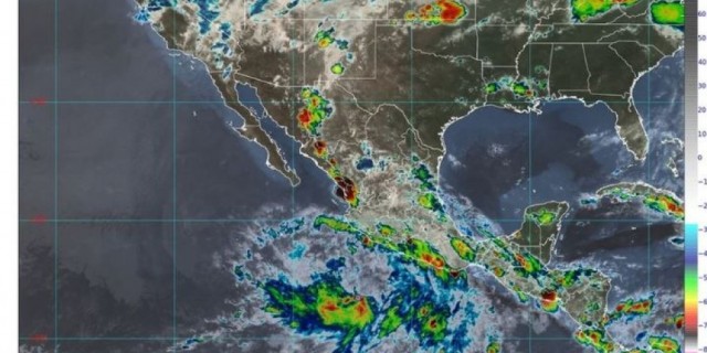 Se pronostican lluvias intensas en regiones de Jalisco y Nayarit; muy fuertes en zonas de Chiapas, Colima, Durango, Michoacán y Sinaloa; fuertes en localidades de Campeche, Chihuahua, Guerrero, Morelos, Oaxaca, Puebla, Sonora, Tabasco y Veracruz; intervalos de chubascos en Baja California Sur, Ciudad de México, Estado de México, Quintana Roo, Tlaxcala, Yucatán y Zacatecas, y lluvias aisladas (de 0.1 a 5 mm) en Aguascalientes, Baja California, Guanajuato, Hidalgo, Querétaro, San Luis Potosí y Tamaulipas.