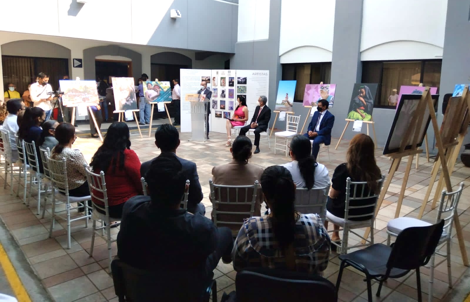 La exposición “Una mirada artística a los derechos humanos” contó con la participación de once artísticas que contribuyeron cada uno con sus piezas elaboradas en diversas técnicas como el dibujo, la xilografía, la fotografía, el acrílico, por mencionar algunas.