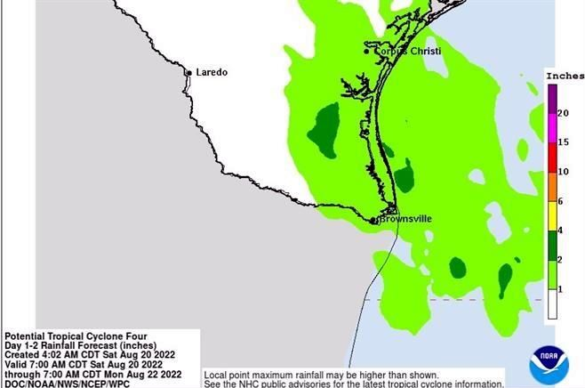 El Centro Nacional de Huracanes en Miami reportó que el potencial Ciclón Tropical Cuatro está a unos 270 kilómetros al sur-sureste de la desembocadura del río Bravo.