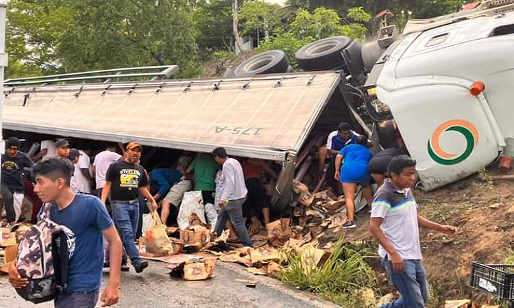 Rapiña: se llevan cervezas tras volcadura de camión en Pochutla