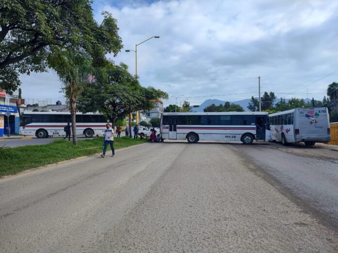 Oaxaca de Juárez. Integrantes del Sindicato de Empleados y Empleadas de Confianza de la Universidad Autónoma “Benito Juárez” de Oaxaca (SECUABJO), bloquearon este lunes Av. Universidad.