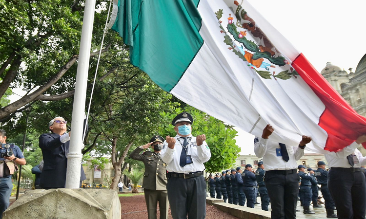 En un evento realizado en la Alameda de León, el contralor, José Ángel Díaz Navarro, y la titular de la Secretaría de Seguridad Pública (SSP), Dalia Baños Noyola encabezaron el Izamiento de la Bandera Nacional.