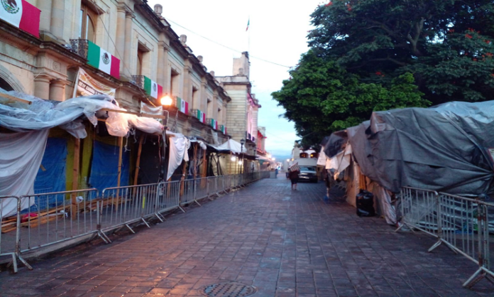 Tras el desalojo de varias organizaciones sociales, los uniformados se colocaron en las calles de Hidalgo y Vadivieso, Guerrero y Armenta y López, 20 de noviembre e Hidalgo, Bustamante y Las Casas, así como del lado de Trujano y Flores Magón en donde instalaron vallas metálicas.