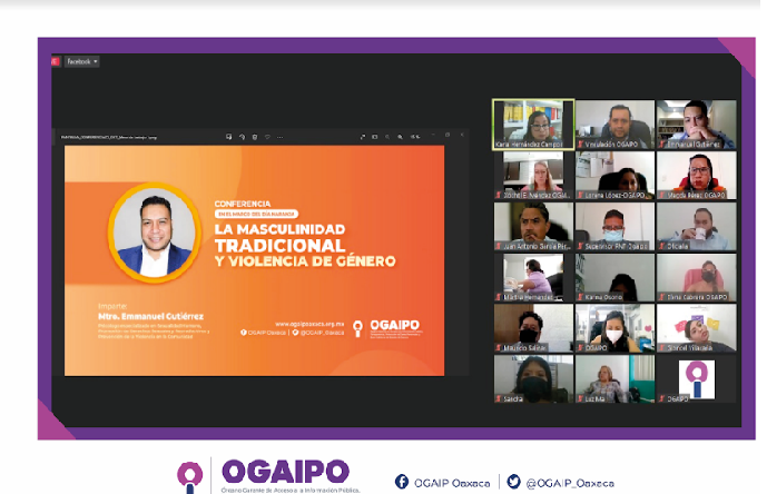 En el marco del Día Naranja, conmemorado el 25 de cada mes, el Órgano Garante de Acceso a la Información Pública, Transparencia, Protección de Datos Personales y Buen Gobierno del Estado de Oaxaca (OGAIPO) organizó la Conferencia “LA MASCULINIDAD TRADICIONAL Y VIOLENCIA DE GÉNERO”.