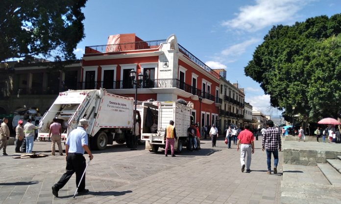 Oaxaca de Juárez. La mañana de este lunes, comerciantes establecidos y vecinos del Comité de Vida Vecinal del Centro Histórico de Oaxaca, levantaron los montones de basura que se acumularon el fin de semana luego de la protesta del sindicato independiente “3 de marzo”.