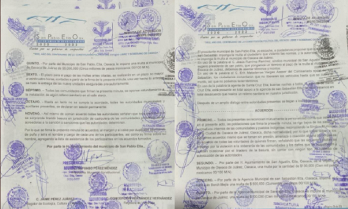 En un documento firmado por autoridades de San Agustín, San Sebastián, San Pablo Etla entre otras poblaciones del Valle Eteco, se le solicitó al edil citadino Francisco Martínez Neri el pago de 5 millones 100 mil pesos durante el lapso de 24 horas.