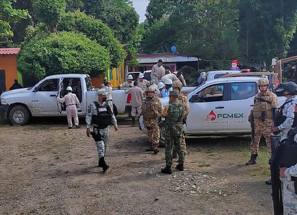 (Sedena) que resguarda la zona, mientras que el personal de Petróleos Mexicanos (Pemex)