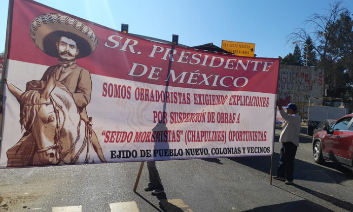 Los inconformes exigieron al edil municipal se ejecute de manera integral una obra de pavimentación en la calle Libertad, que conecta a la vía federal.
