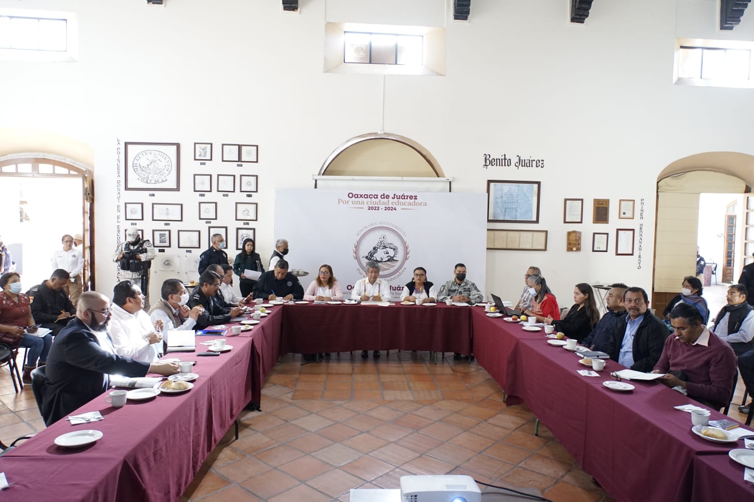 Esta reunión estuvo encabezada por la Secretaria Técnica Regional de Oaxaca de Juárez, Rocio López Cruz, y el presidente municipal de Oaxaca de Juárez, Francisco Martínez Neri, en la cual participaron autoridades municipales, representantes de la SEDENA, GN., AEI, S.S.P.O. y Centro Nacional de Información.