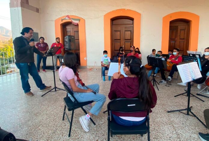 El círculo de lectura se realizó en el corredor del Palacio Municipal de San Agustín Etla, el cual fue acompañado de intervenciones musicales de canciones infantiles interpretadas por la Orquesta.