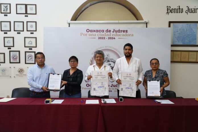 Acompañado del director de Instituto de Capacitación para el Trabajo en el Estado de Oaxaca, Giovanni Jahir Rojas Pacheco, la directora de Vinculación del sector Productivo del Instituto de Capacitación para el Trabajo en el Estado de Oaxaca, Flor Pineda Martínez, la síndica Primera, Nancy Belem Mota Figueroa y el secretario de Desarrollo Económico, José Manuel Vázquez Córdova, el edil capitalino, expresó, sentirse muy contento, pues este documento da testimonio de la voluntad de los dos órdenes de gobierno para contribuir a un mejor desarrollo para la entidad.
