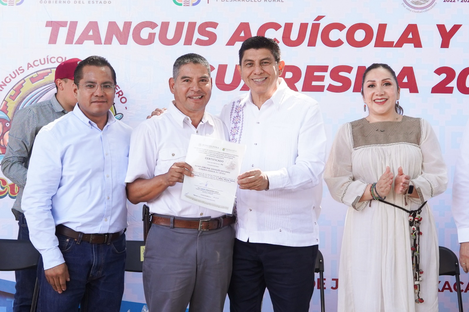 Por parte del Comité de Sanidad Acuícola de Oaxaca, Jara Cruz entregó certificados de Buenas Prácticas Sanitarias a nueve cooperativas y productores e invitó a la ciudadanía a visitar el Tianguis Acuícola y Pesquero Cuaresma 2023 para disfrutar de las truchas arcoíris de la Sierra de Juárez o de la Cañada (ahora Sierra de Flores Magón); tilapia de Valles Centrales o del Istmo de Tehuantepec; ostiones, pulpo y langosta de la Costa.