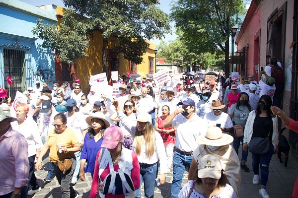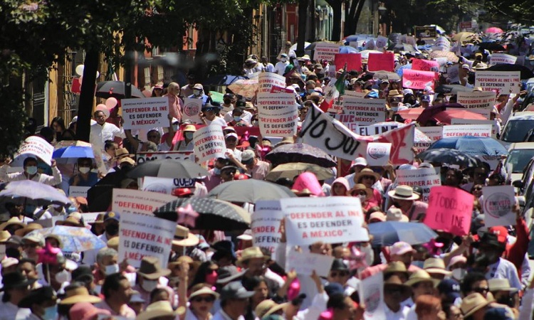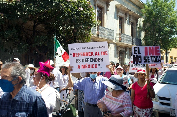 Oaxaca de Juárez. Integrantes de la asociación civil Poder Ciudadano MX x MX, Frente Cívico en conjunto con otras organizaciones de Oaxaca marcharon este domingo en defensa del Instituto Nacional Electoral (INE).