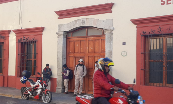 Trabajadores del área de Vectores de los Servicios de Salud de Oaxaca (SSO), protestaron este lunes en oficinas de esta instancia, ubicadas en J.P García Centro y en Casa Oñante.